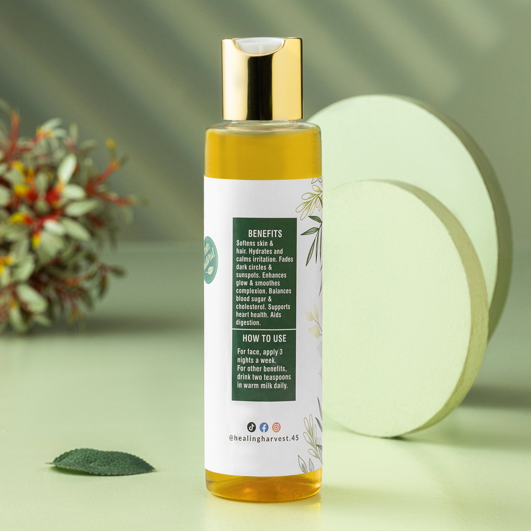 Indulge your hair and skin with the natural richness of Healing Harvest Almond Oil, made from 100% pure, cold-pressed sweet almonds to preserve vital nutrients and moisture. Packed with vitamin E, omega fatty acids, and antioxidants, this lightweight oil deeply nourishes, strengthens, and revitalizes from root to tip — leaving your hair silky and your skin naturally radiant.